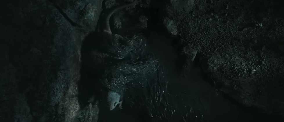 The sequence is a flashback of when Sauron (the big bad Dark Lord) fell from power. His disgruntled minions slew him in his own throne room, but his gooey essence escaped through the cracks in the floor and recongealed deep underground. There he turned into Marvel’s Venom and munched on rats and centipedes and other unappetizing content… still better than a salad though.